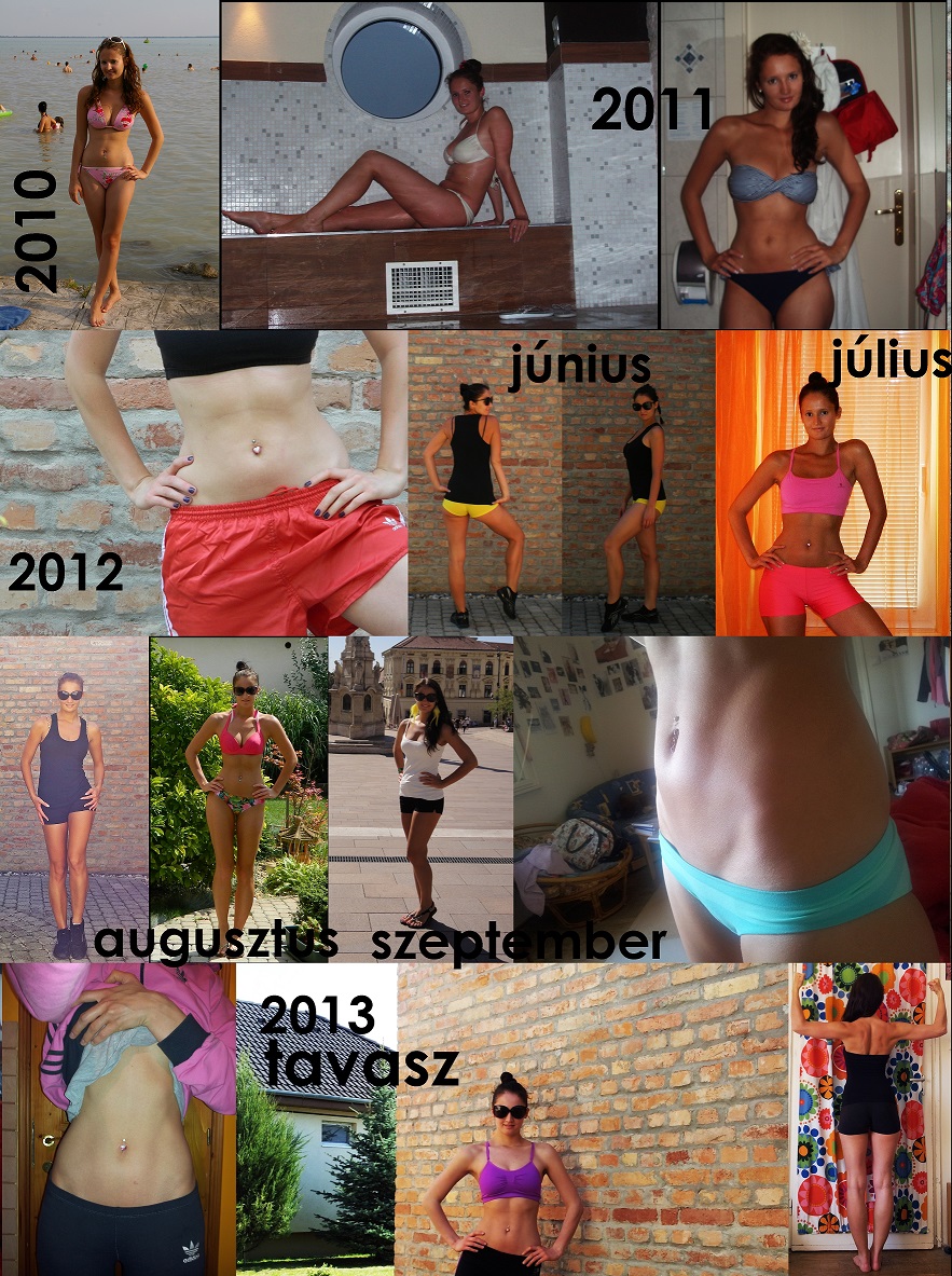 Szépen egyébként engem le is faragott ez a rengeteg mozgás, az első 1-másfél évben, majd fokozatosan formásodtam, hiszen a táplálkozásomra is egyre jobban figyeltem, mivel folyamatosan tanultam az új dolgokat. Egy idő után már teljesen természetessé vált ez a fajta életmód, akárcsak előtte éveken át a „hagyományos” étkezés. Előfordul, hogy kérdezik tőlem az emberek: "Te is fogyókúrázol, diétázol?" stb. A válaszom NEM!!!! Soha nem fogyókúráztam, ez egy életmód, egy olyan személyre szabott életforma, amit egy ÉLETEN ÁT óhajtok fenntartani! Eszembe nem jut már olyan táplálékot megennei, ami nem jó a szervezetemnek. Miért tenném? Nem arra van szüksége, hogy szemetet adjak neki.Később majd a családomat is a lehető legegészségesebben szeretném kialakítani. Ez nagyon nagyon fontos! Eszembe nem jutna megvonni magamtól semmit! És senki ne is tegye! Mindenre keresek alternatívát, kitalálok, alkotok, olvasok, kutatok ha valamit nem tudok, vagy új dolgot szeretnék kipróbálni. Én úgy tapasztaltam, hogy 70%- ot a bevitt táplálék minősége, mennyisége, 30% -ot pedig sport teszi ki (ez szakértők szerint is így van). A kezdettekkor természetesen közel sem így láttam a dolgokat, mint most. Lassacskán teljesen kiiktattam a cukrot, cukor tartalmú ételeket az étrendemből, helyette édesítőt (ami tudom nem a legjobb megoldás, de valahol el kell kezdeni, és váltani fogok nemsokára), nyírfacukrot iktattam be az életembe, zabpelyhet, zabkorpát, magliszteket, rozslisztet, kókuszlisztet kezdtem el használni a búzaliszt helyett, sok házi tojást, sovány húst, zöldséget, gyümölcsöt, és túrót is fogyasztok. Pénzszűke miatt az itthoni lehetőségekhez mérten a maximumot próbáltam, és próbálom kihozni az étkezéseimből mind a mai napig. Ami az egyéb edzésmódszereket illeti, 2012 Decemberében kaptam ingyen bérletet egy győri konditerembe, így akkor kezdtem el a súlyzós edzéseket is. Azonnal megszerettem. Vettem is éves bérletet, hiszen úgy éreztem ez az én helyem, hiszen erőt adtak a súlyok. Volt néha segítségem a teremben, de az esetek többségében egyedül jártam. Nagyon szerettem magamban edzeni, nem érdekelt senki, kizártam az embereket, igyekeztem csak magamra figyelni. Több hozzáértő ember küldött nekem videókat, anyagokat, táplálkozásról, mindenről, ami fontosnak bizonyult ahhoz, hogy megtanuljak dolgokat. Egészen addig konditeremben edzettem, amíg úgy nem hozta az élet (egészen pontosan én alakítottam úgy), hogy kiköltöztem Cannes-ba, Franciaországba 2013 nyarán. Nem hagytam volna abba semmi pénzért a sportot. 2013 június havában volt az első futóversenyem, a Dechatlon Győr-Büch Ipari park félmaraton, 1 évvel azután hogy visszatértem a sportoláshoz. A cél nem volt más, mint végigcsinálni, lefutni a 21km-t, és önmagamat legyőzni. 2013 július 21-én, a 23. szülinapom után, és a cannes-i kiutazásom előtt pedig lefutottam a Győr-Lipót 26km-es távot is. Nem volt megállás. Rengeteget edzettem, bármikor rosszkedvem vagy jókedvem volt, a sport és a megfelelő zene megoldást jelentett. A sport mindenre gyógyír, nálam legalábbis biztosan. Persze nem volt könnyű, voltak mélypontok, mint az élet minden területén általában vannak, mindenkinek. Párszor egyébként már az is megesett, hogy zokogtam edzés alatt, szinte őrjöngtem belül futás közben, vagy éreztem azt, hogy inkább visszafordulok 5 km után, és hagyom a fenébe az egészet, mert nem bírtam tovább azt éreztem feladom, aztán csak legyőztem magam, századjára is, és soha nem adtam fel, mindig átlendültem. Mert nem tehettem mást, úgy éreztem ez az én utam, nem adhatom fel, hiszen az élet sem erről szól. Amikor kiköltöztem Cannes-ba, sokan mondták, hogy "Úgyse fogod bírni munka mellett, ezt az életmódot." ,vagy "Úgyse tudsz majd figyelni az étkezésedre." Ó hát hány, de hány ember szájából hangzott ez el. De nem érdekelt senki, hiszen úgy gondolom, hogy mindenki csak és kizárólag saját maga tudja, hogy neki mi a jó, hiszen senki nem lát bele a másik fejébe, és nem tudunk testet se cserélni egyelőre másokkal, úgyhogy az a biztos, amit te megtapasztalsz, arra tudsz hagyatkozni, az a „szentírás”. Eldöntöttem, hogy kinn az adott helyzetből hozom ki a maximumot. Elárulom, hogy másfél literes vizes flakonokkal súlyzóztam (úgyhogy nekem ne mondja senki, hogy nincs lehetősége sportolni, mert igenis van mindenre megoldás, ahol akarat van ott út is, nincs top secret). Emellett saját testsúlyos gyakorlatokat, Rubint Réka tornákat, és futást végeztem külföldi tartózkodásom során. Volt, hogy munka előtt, volt, hogy munka után, de heti 3x biztosan futottam, félmaraton távokat is. Előfordult azonban, hogy a szervezetem jelzett, hogy álljak meg egy kicsit, na akkor volt, hogy jött a betegség, torokfájás, nátha "úgynevezett torkig vagyok szindróma" aminek én hívom, vagy túledzettségnek, mert bizony volt ilyen is. De ezeket is meg kell tanulni észrevenni, és akkor megpihenni. Ez félévente, amikor lemerült az elemem sajnos kijött rajtam, úgyhogy mára már ezt a leckét is megtanultam, hogy türelem kell mindenkinek saját magához, nem szabad leterhelni a testet, se a szellemet főleg nem egyszerre. Ismerd meg önmagad, nagyon fontos, hiszen a kulcs mindenhez nem máshol, mint a Te szívedben van. Az a kulcs pedig minden ajtót kinyit, azok közül, amit Neked szántak odafenn.Higgyétek el nagyon is okos a testünk és mindig jelez, csak meg kell tanulni figyelni, befelé.