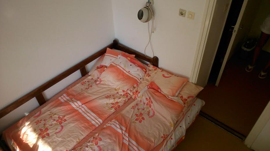 Megmutatták a szobánkat, ahonnan akkor éppen két idős hölgy jött ki, akik ugyancsak a hűtőt kérdezgették és inkább a szemben lévő szobába mentek át (ami ugyanolyan egyszemélyes szoba volt). A szállás az A és B épület fotóival hirdeti magát (amikben valóban van hűtő és tévé), de nekünk és rajtunk kívül másnak is a jelzett szobák jutottak a raktárhelyiség mellett. Valószínűleg régen ez csak a kiszolgáló melléképülete volt az üdülőnek.
