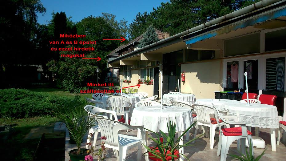 A személyzet unalmas, kiábrándult, pár főből álló (anya, fia, nagymama) csapat. TÉVED A TULAJDONOS ÉN VAGYOK ÉS NEM A ROKONAIM ÉS NEM A ROKAONAIM AZ ALAKALMAZOTTAK MÉG HA ITT LAKNAK NÁLAM AKKOR SEM ! a leírásban fel volt tüntetve a hűtő a szobákban,LEGYEN SZÍVES MUTASSA MEG A LEÍRÁST MERT HÜTÖT NEM HIRDETEK ÉS AZ OTT VAN MÁR TAVALY ÓTA AMIT HASZNÁLTAK de csak egyetlen közös hűtő volt, az is háromszori kérésreA-B ÉPÜLETBEN A SZOBÁKBAN HÜTŐ VAN . Ráadásul egy másik épületben. - reggelinél egy éve lejárt szavatosságú ketchupot és majonézt adtak. - a szoba kicsi, egyszemélyes, amibe beraktak egy törött ágyat, így téve kétszemélyessé,A SZOBA 2 SZEMÉLYES ÉS SEHOL AZ ÉPÜLETEKBEN NINCSEN TÖRÖT ÁGYAM de elférni nem lehet benne ketten. - este a személyzet hangoskodik, egyáltalán nem érdekli őket, hogy vendégek vannak, akik pihennének. - a kertrész ápolatlan, lepusztult. MI AZ HOGY A KERTÉSZ ÁPOÉATLAN LEPUSTULT ???TUDJA ÖN HOGY KI A KERTÉSZ ??? SZERINTEM NEM - a sporteszközökkel a személyzet játszik (ping-pong). A VENDÉEGK HASZNÁLTÁK A SPOR ESZKÖZÖKET - egy pici, gyermekmedence volt a kertben, ATTÓL FÜGG KINEK MI A PICI 3X3 AS MEDENCE AMIBEN FELNÖTTEK STRANDOLNAK HA JÓ AZ IDŐ, ESŐBEN PERSZE LETAKARVA VAN de az is lefedve és leeresztve, miközben gyermekes családok is nyaraltak a 33 fokban. - ezért az árért sokkal kulturáltabb, kellemesebb szállást is találni sokkal közelebb a parthoz, sokkal szebb szállásokon. SZERINTEM MIKOR IDE ÉRKEZETT NEM VOLT KÖTELEZŐ ITT MARADNI, AZT ÖN IS TUDJA HA ENNEK A FEL IS IGAZ LETT VOLNA AKKOR NEM MARAD A SZÁLLÁS HELYEN NEM MÉG REGGELIZIK IS! AMENNYIBEN 2 NAPON BELÜL NEM TÖRÖLTETI A BEJEGYZÉSÉT AMI VALÓTLAN AKKOR RÁGALAMAZÁSÉRT HITEL RONTÁSÉRT BEPERLEM ÖNT 2014. AUGUSZTUS 10 UTÁN AZ ÜGYVÉDEM FOG ÖNNEK FELSZÓLITÓ LEVELET ÍRNI ÉS ELINDÍTJA A KÁRTÉRÍTÉSI PERT !
