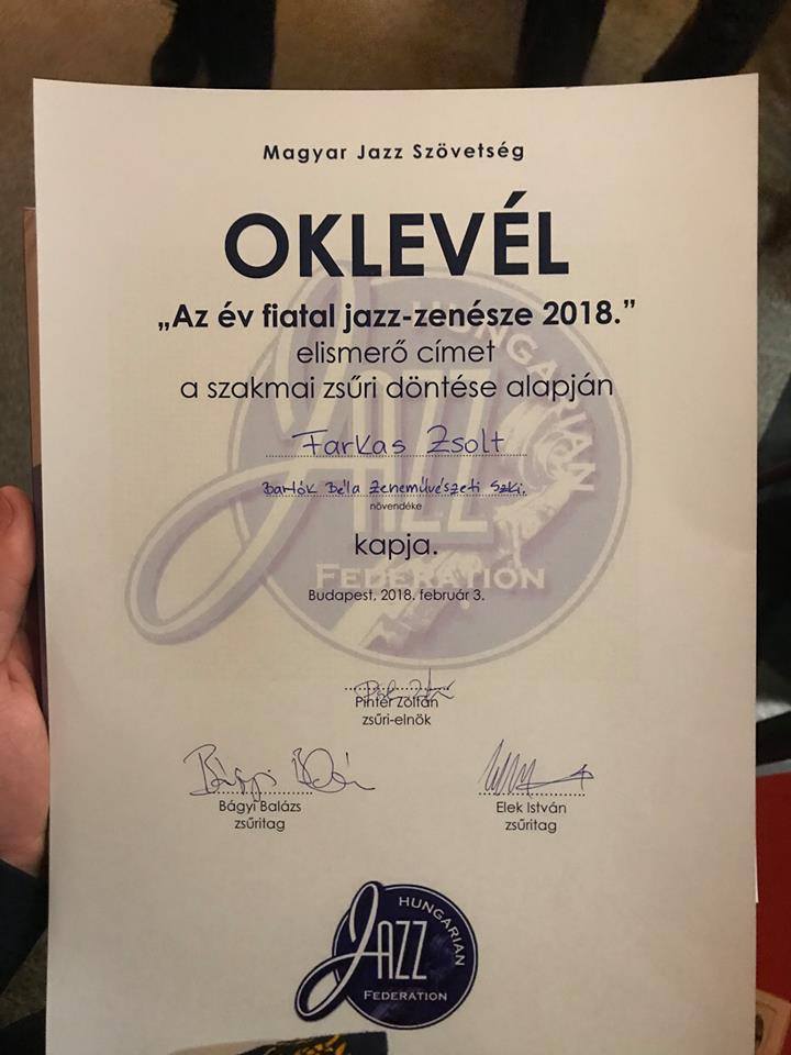 A Jazzszövetség díját ebben az évben, Szulák Andrea tanítványa, a Sztárban sztár+1 kicsi egykori győztese, Farkas Zsolti kapta.