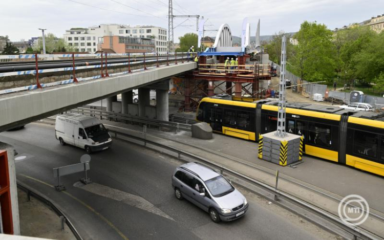 - hangsúlyozta Kovács Balázs Norbert, az Építési és Közlekedési Minisztérium (ÉKM) budapesti kormányzati beruházásokért felelős miniszteri biztosa csütörtökön Budapesten sajtótájékoztatón. A helyszínen bemutatták, hogy a forgalom akadályoztatása nélkül kerül a helyére a Szerémi út és az 1-es villamosvonal feletti új vasúti híd.