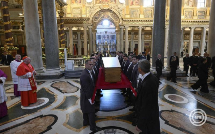 Végső nyughelyére helyezték Ferenc pápát a római Santa Maria Maggiore-bazilikában - tájékoztatott a Szentszék szombat délután.