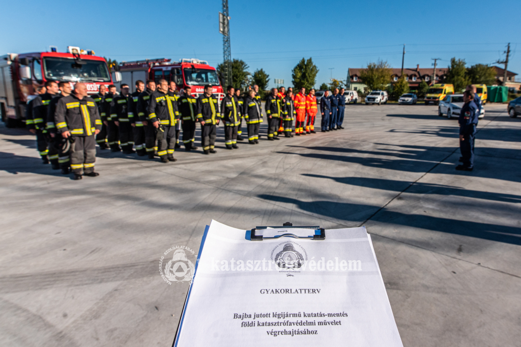 Sikeres országos gyakorlatot hajtottak végre a kijelölt kutató-mentő egységek október 19-én. Ugyanis kormányrendelet írja elő, hogy a BM Országos Katasztrófavédelmi Főigazgatóságnak évente egy alkalommal szakmai továbbképzést és gyakorlatot kell szerveznie azoknak a szervezeteknek, amelyeknek egy bajba jutott légi jármű mentésében lehet feladatuk. Idén Győr-Moson-Sopron megye adott otthont a tréningnek.