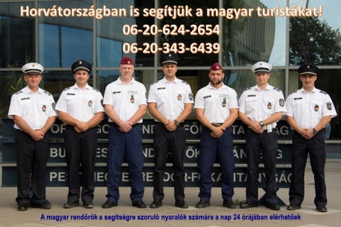 A magyar rendőrök a segítségre szoruló nyaralók számára a nap 24 órájában elérhetőek a +36206242654 és a +36203436439 mobil elérhetőségeken.