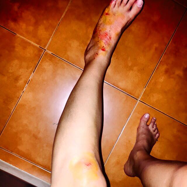 ,,Csodaszép nap volt a mai.. fél napot töltöttünk egy thaiföldi rendőrségen egy turista lehúzó jetski kölcsönző brigád hülyesége miatt, majd motorbaleset...megállt alattam a moci és borultam. Soha jobbat...”