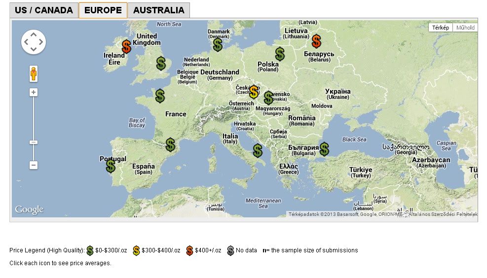 Az oldal nagyon felhasználóbarát! Választhatunk kontinenst, így ha nem vagyunk kíváncsiak a New York-i dílerek áraira, feleslegesen nem kell átnyálaznunk. Át is kattintottam Európára, mondjuk úgy nem lepődtem meg, hogy hiányossága ellenére, Magyarország, méghozzá Budapest képviselteti magát!