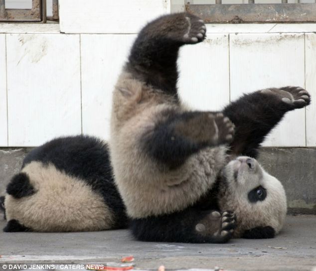 Ritkán látni ilyen eleven pandákat, az egyik leginkább veszélyeztetett faj képviselői játékba kezdtek egy Kínai állatkertben. Próbáltak felmászni egy oszlopra, de mindig visszacsúsztak. Majd egymásra estek.