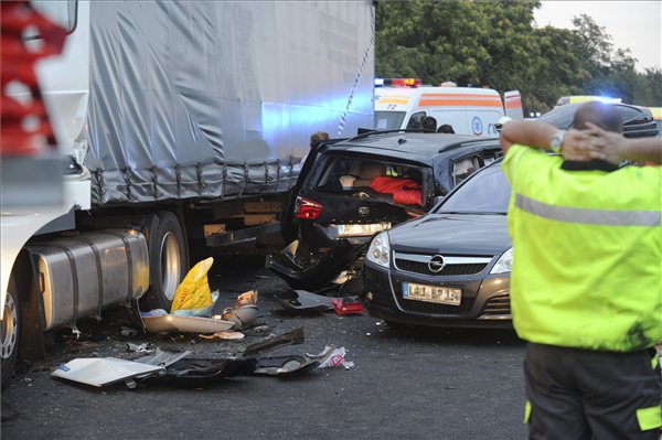 Az MTI helyszínen tartózkodó tudósítója szerint hárman meghaltak és mintegy huszan megsérültek abban a péntek reggeli balesetben, amelyben több jármű ütközött az M5-ös autópályán Ócsa és Gyál között.