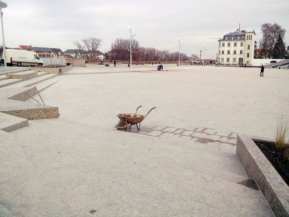 „Bár a hivatalos átadásra jövő tavasszal kerülhet sor, a Dunakapu tér burkolata a helyére került, így a gyalogosok már használhatják azt. A hétfői kerítésbontás feltétele volt, hogy elkészüljön a tér közvilágítása, és a felület is biztonságosan használható legyen.” – mondta el Borkai Zsolt polgármester.