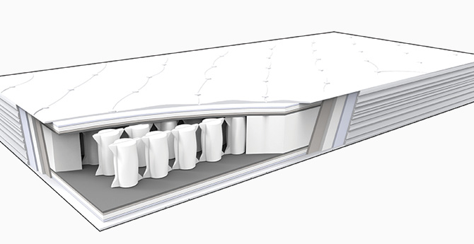 A matracban kialakított zónák a különböző felfekvések, alváspózok idején tökéletes anatómiai tartást biztosítanak.
