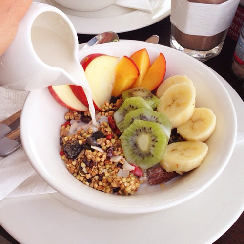 Reggeli: egy csésze zöld tea, egy zsírszegény müzliszelet.