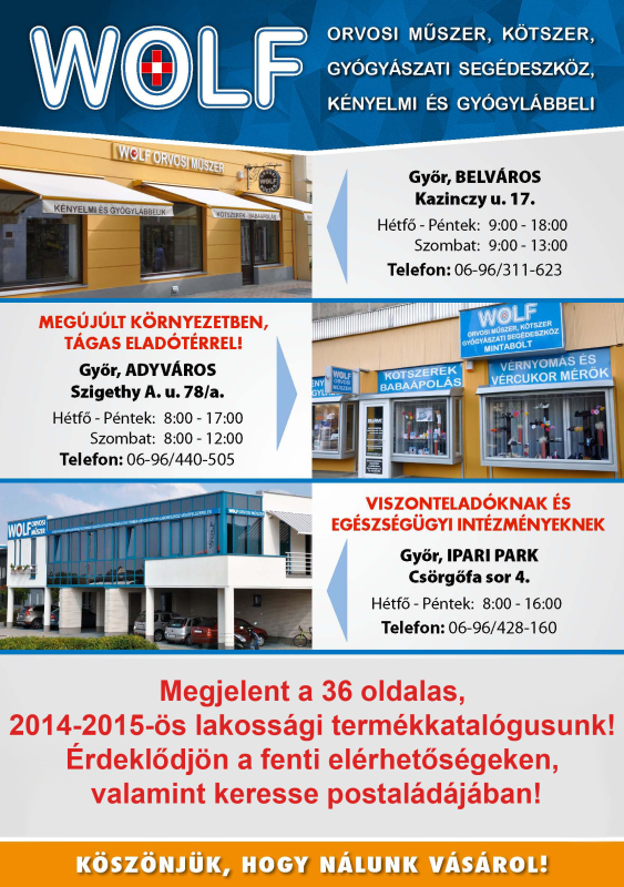 Cégünk a WOLF Orvosi Műszer 1992-ben alakult. Fő profilunk az orvosi műszerek, gyógyászati segédeszközök, egészségügyi, laboratóriumi és munkavédelmi termékek forgalmazása.