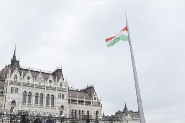 Felvonták, majd félárbócra engedték a nemzeti lobogót az Országház előtt