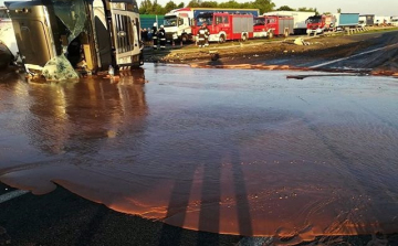 Felborult egy kamion a Varsó melletti autópályán. Több tonna folyékony csokoládé borította be az úttest mind a hat sávját.