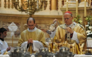 Az utolsó vacsorán Jézus, aki már távozni készül a világból, megmutatja, mennyire szereti övéit - mondta Erdő Péter bíboros, esztergom-budapesti érsek nagycsütörtök este az esztergomi bazilikában.