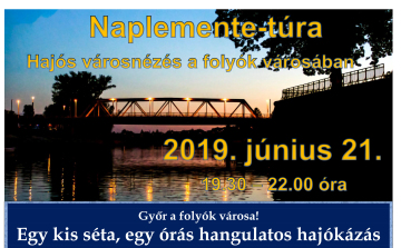 2019. június 21-én, a Múzeumok Éjszakája hétvégéjén, 19.30 órától "Naplemente-túra", hajós városnézésre vár a GyereGyőrbe Tematikus városnézések és Élményprogramok csapata.