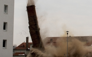 Pénteken délelőtt 11 órakor eltűnt, romba dőlt Győrben egy 107 éves ipartörténeti emlék, az Olajgyár kéménye, Győr-Szigetben.