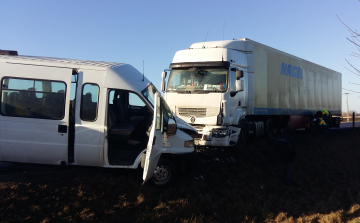 Tizenöten sérültek meg könnyebben egy balesetben a 42-es főúton, amikor kedd reggel egy kisbusz kamionnal ütközött - közölte a hajdú-bihari rendőr-főkapitányság sajtóreferense az MTI-vel.