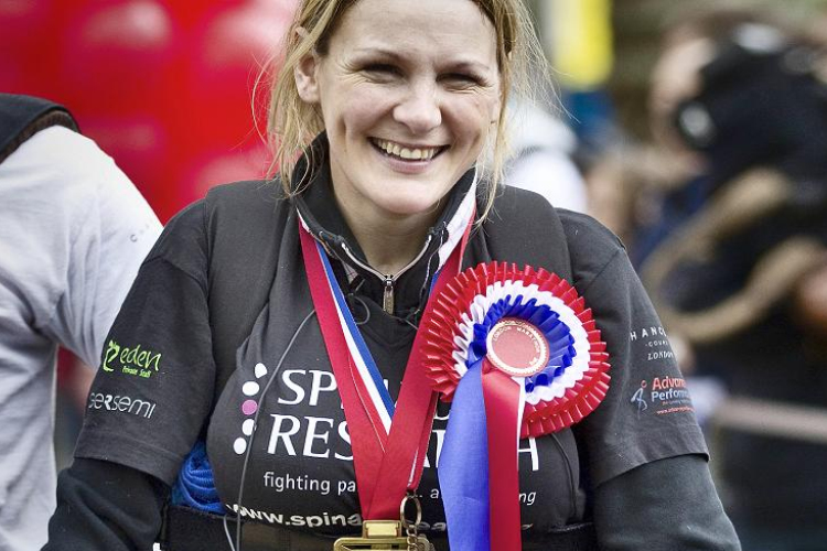 Öt nap alatt futotta végig Nagy-Britannia legnagyobb félmaratonját Claire Lomas, aki 2007-ben mellkastól lebénult egy lovas balesetben.