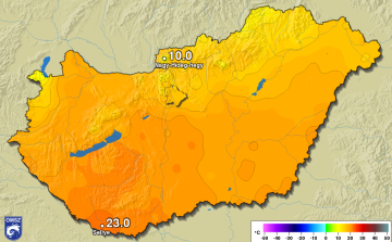 Az Országos Meteorológiai Szolgálat előzetes adatai szerint hétfőn megdőlt a 2015-ben Bátán mért 22,7-es Celsius-fokos eddigi rekord.