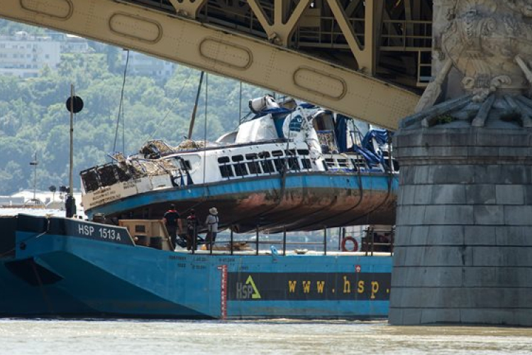 Hétórás mentés után a terveknek megfelelően sikeresen kiemelték a május 29-ei balesetben elsüllyedt Hableány turistahajót kedden Budapesten, a Margit hídnál.