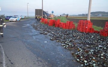 A kamionos 23 tonnányi sör rakományát borította az útra