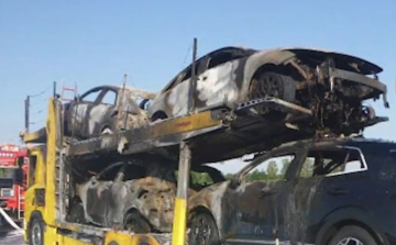 Megdöbbentő videó! Autószállító kapott lángra az M86-oson