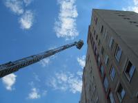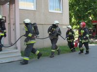 A tűzoltók egy feltételezett tűzesetet szimuláltak a panelépület hatodik emeletén, amely a konyhában keletkezett. A tűzzel érintett helyiség feletti lakásban rekedt egy lakó, aki a keletkezett nagy füst miatt a lépcsőházon keresztül nem tudta elhagyni otthonát, így a tűzoltók a magasból mentő gépjárművel hozták le a férfit.