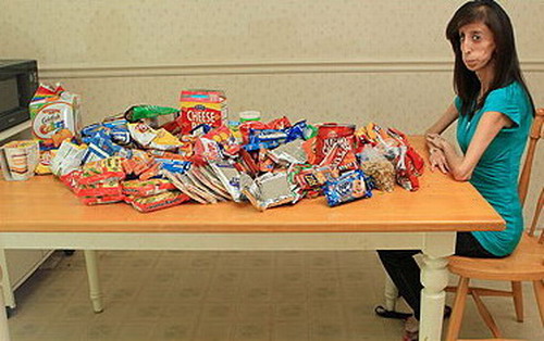 Lizzie Velasquez nem anorexiás, hihetetlen, de nem is szenved semmiféle evési rendellenességben, eszik, mint a farkas, naponta hatvanszor. Sőt muszáj neki, hiszen ha nem tenné, akkor akár bele is halhatna abba a nagyon ritka betegségben, amibe a világon, vele együtt mindössze hárman szenvednek.