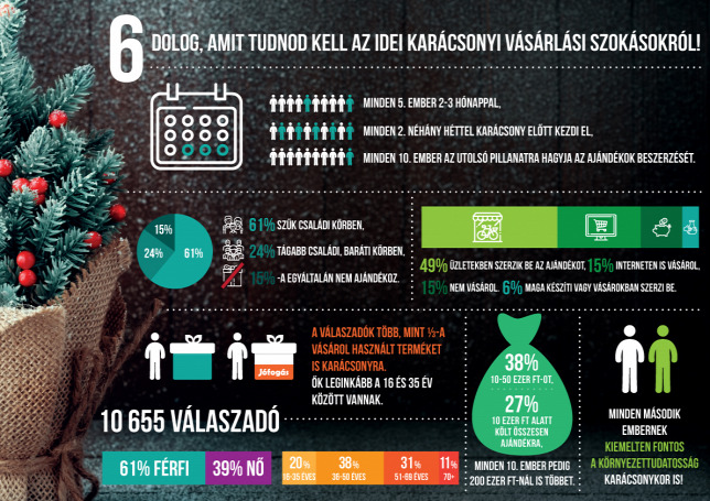 A Jófogás online felmérésére válaszadók közel fele karácsonykor is nagyon fontosnak tartja a környezetvédelmet, és odafigyel, hogy ilyenkor se terhelje jobban a környezetet. Mindenképpen biztató, hogy egyre többen vannak (20 százalék), akik idén először erre is szeretnének jobban odafigyelni.