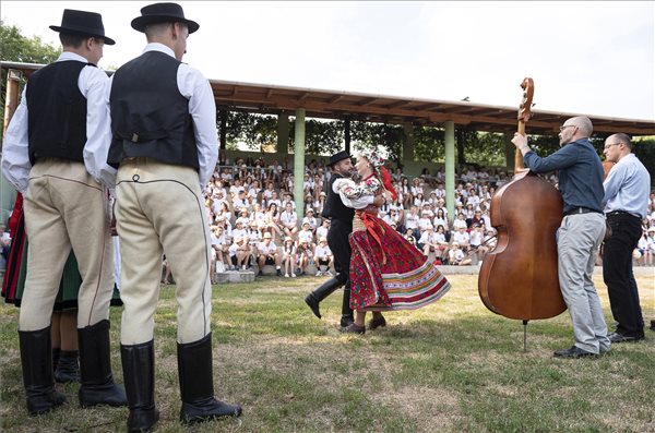 Sátoraljaújhely, 2019. július 16. Résztvevők táncolnak a Rákóczi Szövetség nyári diaszpóratáborának megnyitóján a Rákóczi Tábor és Rendezvényközpontban.