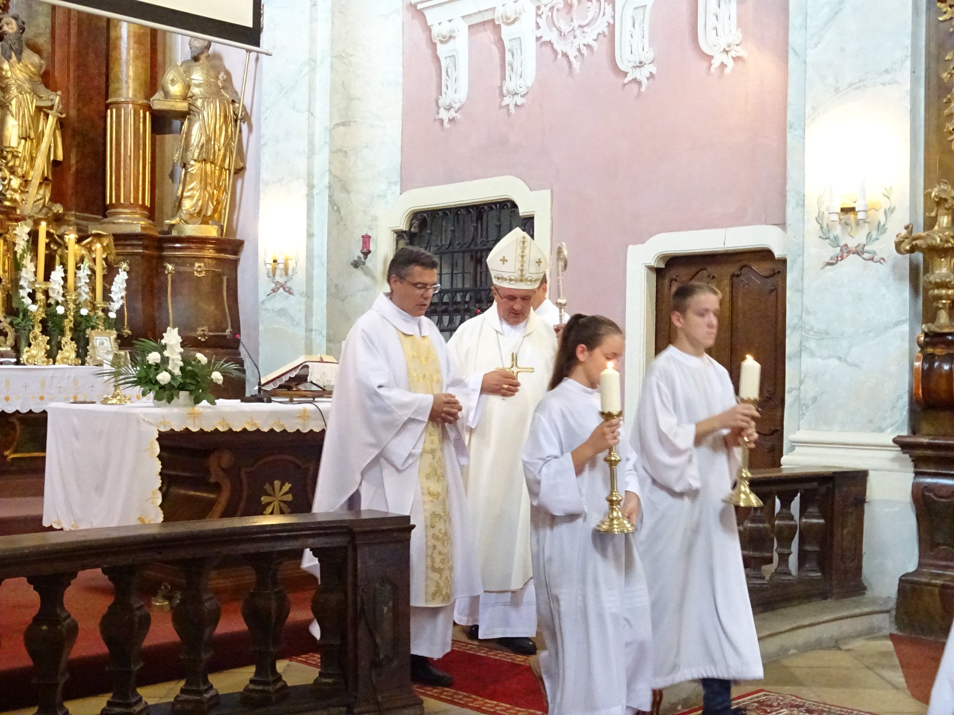 A több napos, világi és egyházi programsorozat kiemelkedő eseménye volt az augusztus 5-én, vasárnap, délelőtt 11 órakor bemutatott püspöki szentmise, melynek főcelebránsa Mons. Dr. Veres András megyéspüspök úr volt. Koncelebrált a helyi egyházközség plébánosa, Gőgh Tibor atya.