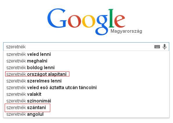 A google keresőbe ha elkezded begépelni a kívánt keresést, felajánl lehetőségeket, amit valószínűsít, hogy keresel, gondolom a legtöbbet keresett kifejezések alapján. Meglepő baromságokat akar tudatni velünk!