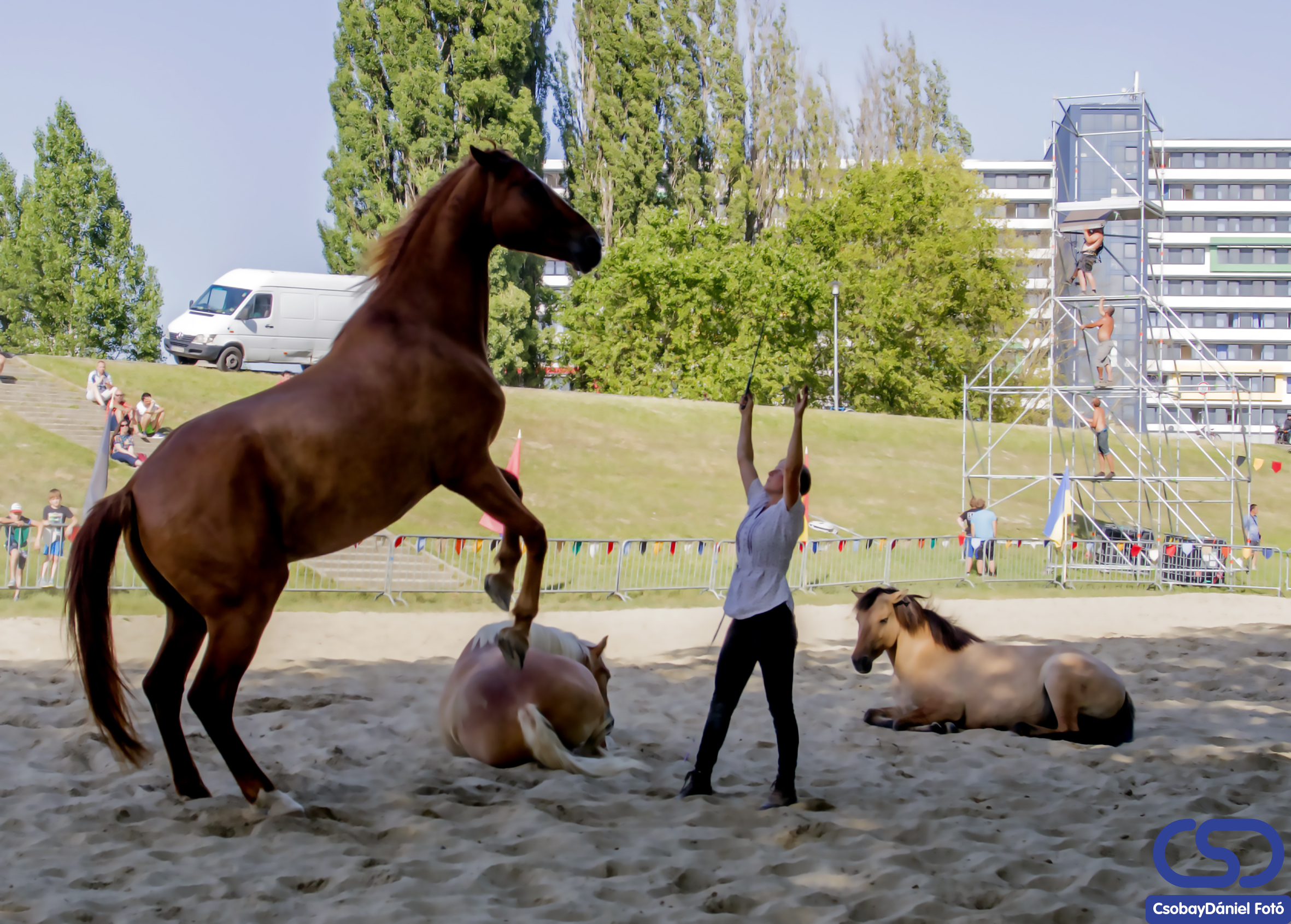 A győri Szent László Napok sokszínű programjai között, az Aranysólyomfészke solymászcsapat is bemutatkozott, majd Hamza Viktória és lovai varázsolták el előadásukkal a közönséget.