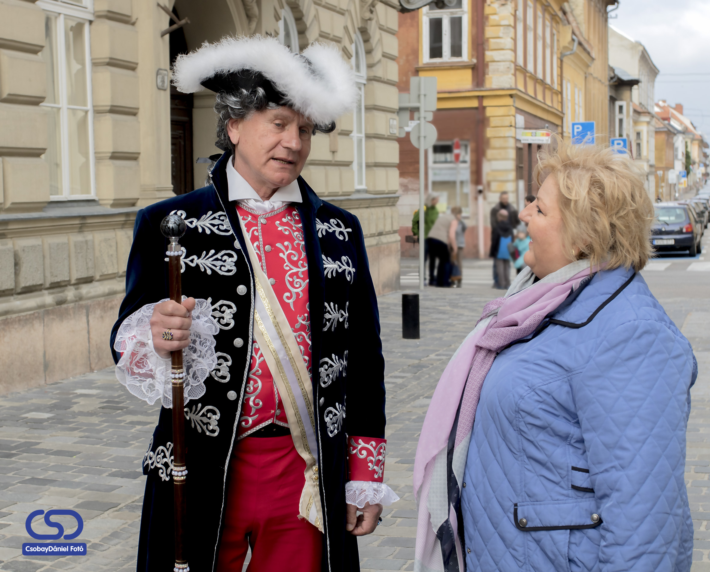 Szombaton délután hirtelen nem akartam hinni a szememnek. Belvárosban tartózkodásom idején barokk ruhás hölgyekre és férfiakra lettem figyelmes a Magyar Nemzeti Levéltár, Győr-Moson-Sopron Megye Győri Levéltára előtt.
