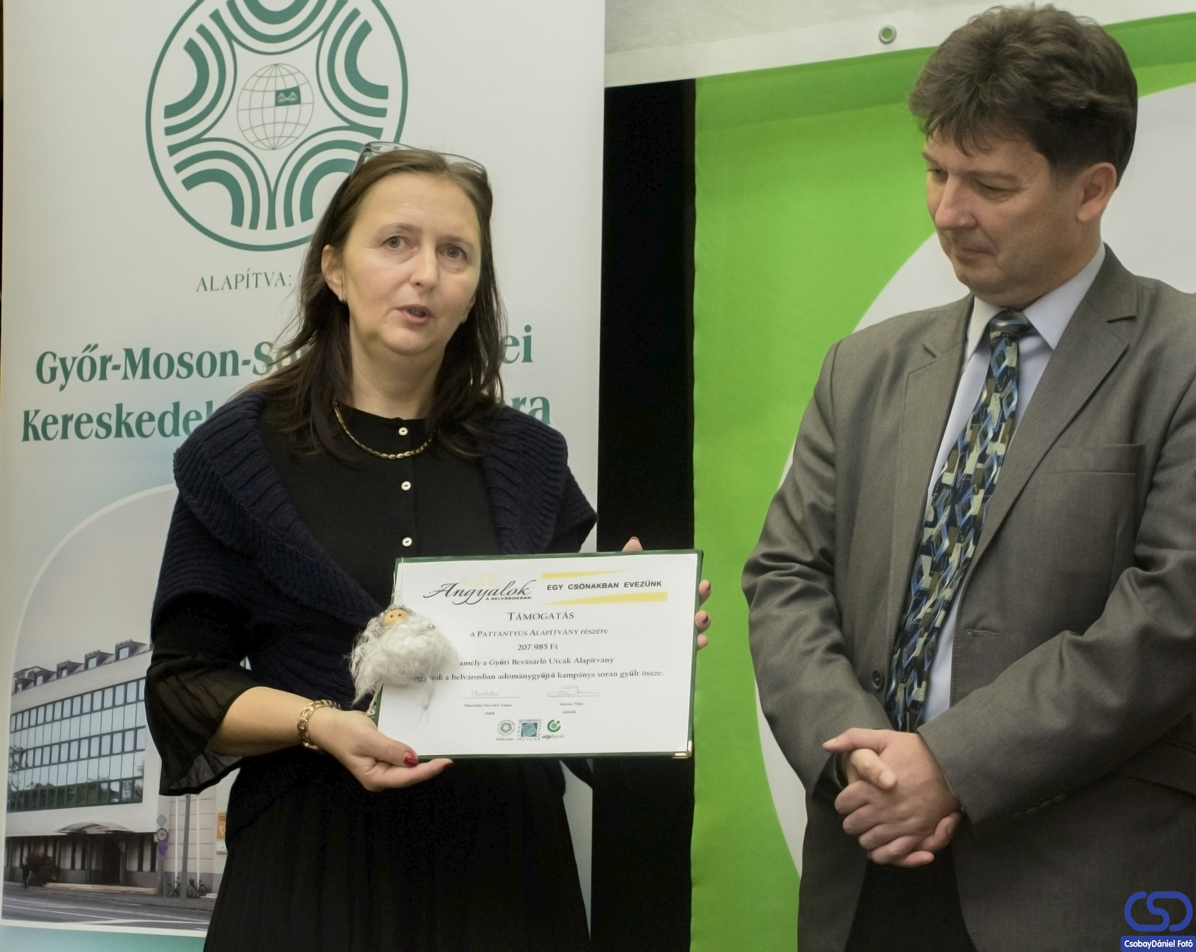 Hétfőn délelőtt adta át az adománygyűjtésből befolyt összeget a Győri Bevásárló Utcák Alapítvány a Győri Műszaki SZC Pattantyús-Ábrahám Géza Ipari Szakközépiskola és Általános Művelődési Központban.