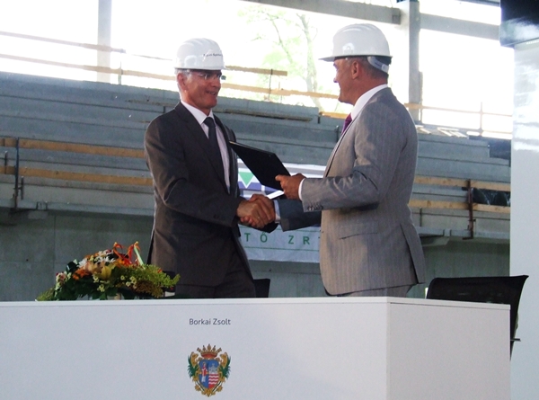 Thomas Faustmann elmondta az Audi Hungaria Kft. az elkövetkezendő tíz esztendőben névadó szponzora lesz a csarnoknak, ami az Audi Aréna Győr nevet fogja viselni. Beszámolt arról is, hogy az Audi húsz éve van jelen a város életében, és ma már Győr szerves részévé vált. Hozzátette, a város szemmel láthatóan óriási ütemben fejlődik, Magyarország kiemelkedő városa és gazdaságának motorja.