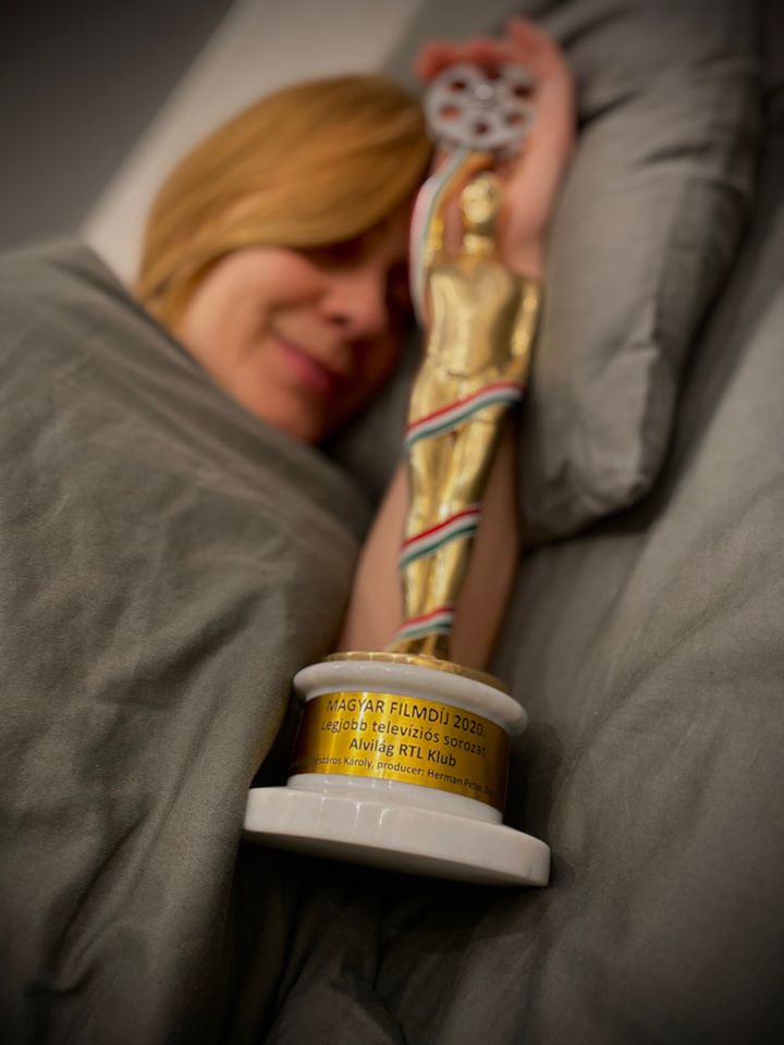 " Gyermeki öröm és boldogság❤️ Szeretettel gratulálok minden ALVILÁG-i csodás munkatársamnak! A legjobb sorozat díját vehettük át ma este a Magyar Filmdíj ünnepségén! Csodás, nehéz és varázslatos munka volt, a legjobbakkal! Köszönöm, hogy veletek lehettem!"