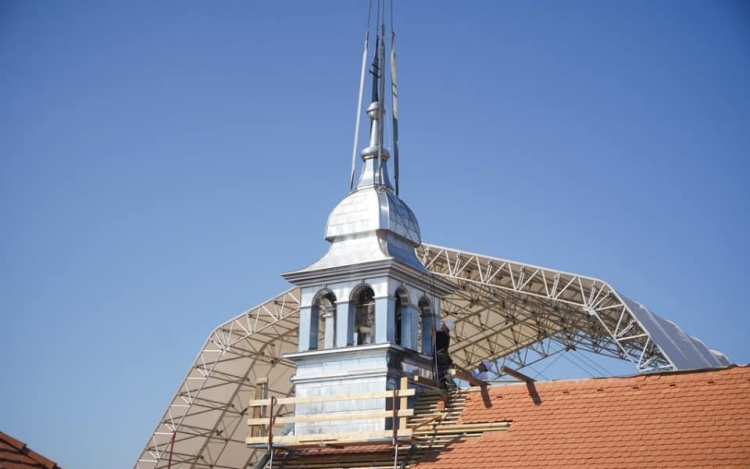 És ami az említett látványos és jelképes állomást illeti, Simon Róbert Balázs országgyűlési képviselő osztotta meg Facebook-oldalán, hogy elkészült a templom huszártornya, beemelték a torony harangszéket a két haranggal, majd a toronyfedést. A győri Loyolai Szent Ignác bencés templom barokk huszártornyát 1938-ban elbontották, de korabeli fényképek, valamint a megmaradt eredeti kovácsoltvas kereszt felhasználásával el tudták készíteni a szinte eredeti állapotot idéző terveket majd magát a tornyot, ami most helyére került.