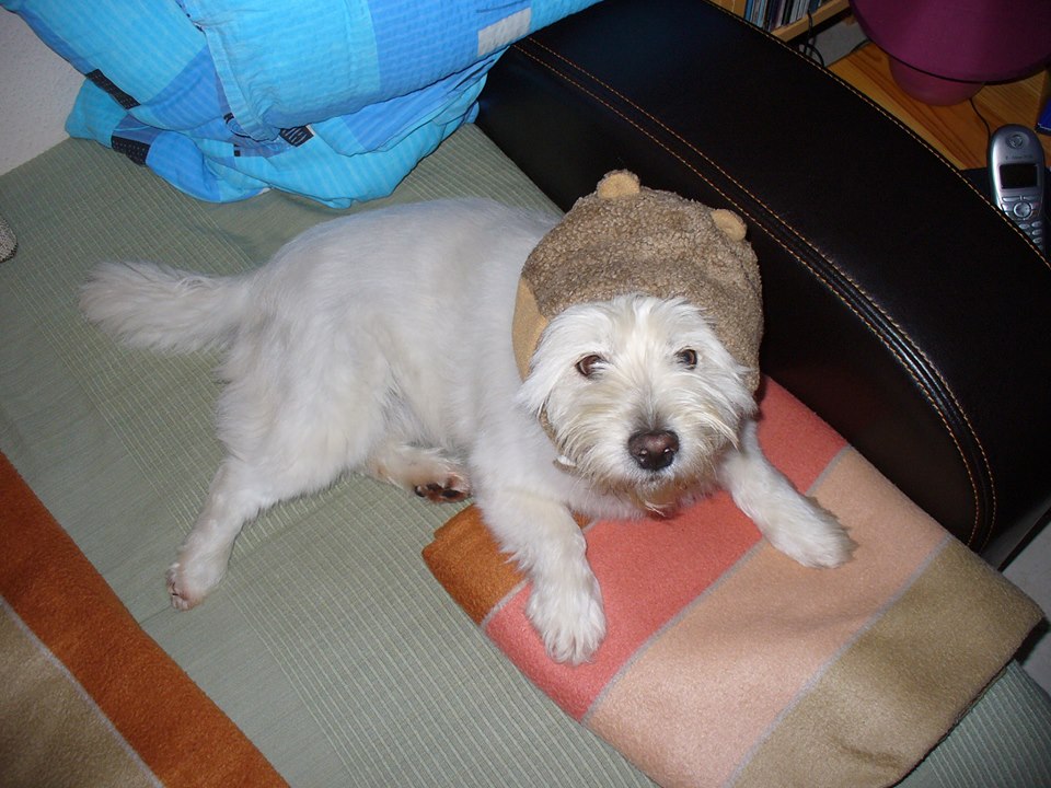„Nézd, csak, Bence: ez a kiskutyám, Borcsi, mackósapkában. Kívánunk Neked sok erőt, gyógyulást. Nagyon erős srác vagy. Csak így tovább”!