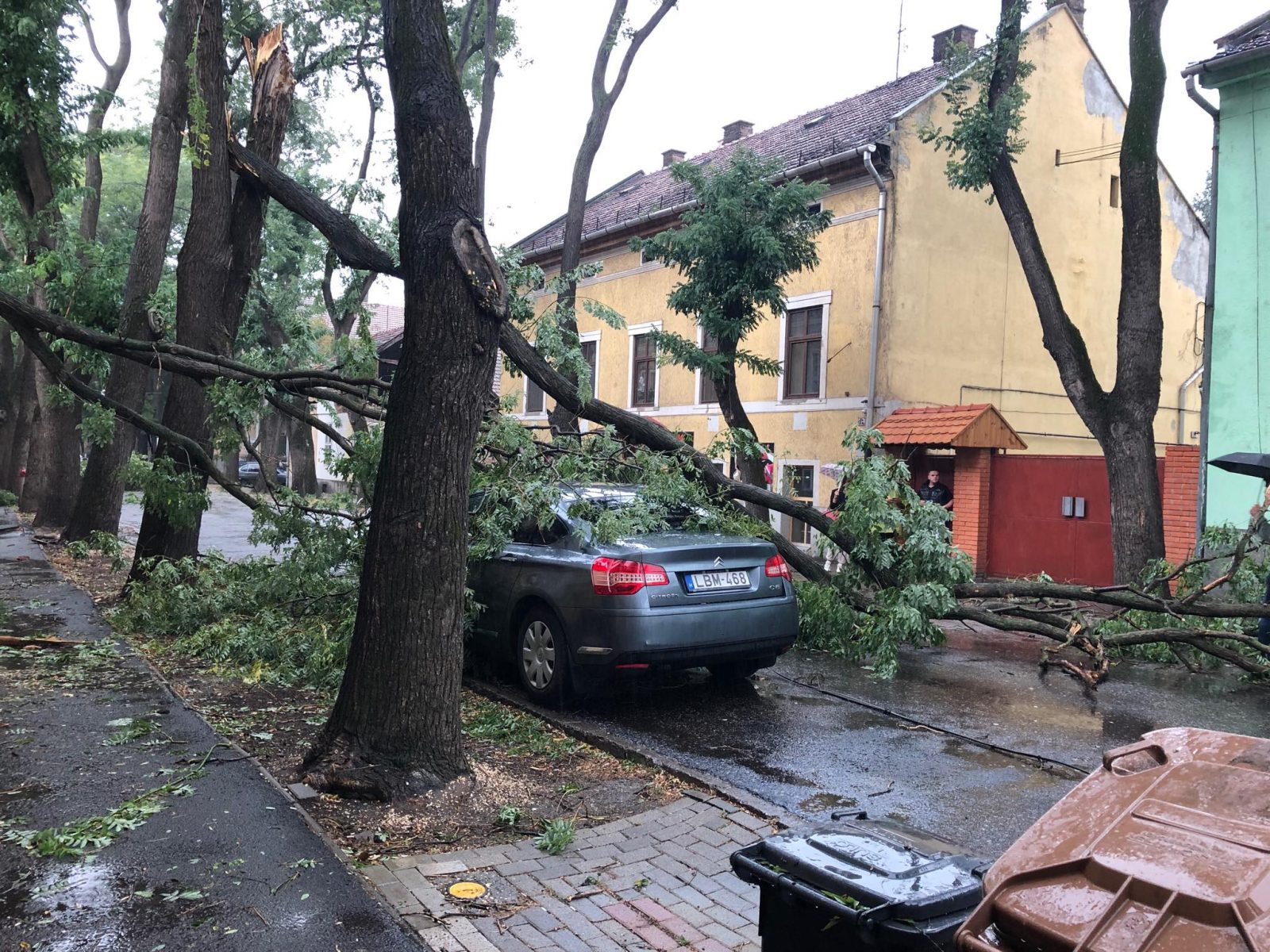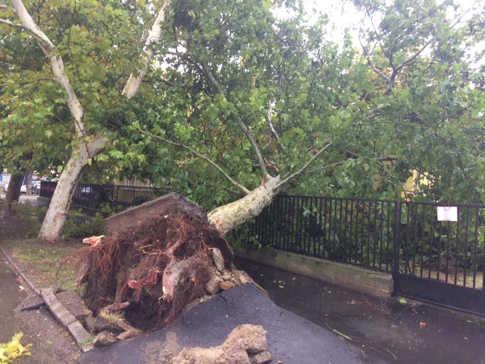Az Országos Meteorológiai Szolgálat egyik műszere 112 kilométer/órás erejű szelet mért a városban. Pont az erős szél egy óriási, fát gyökerestül tépett ki.