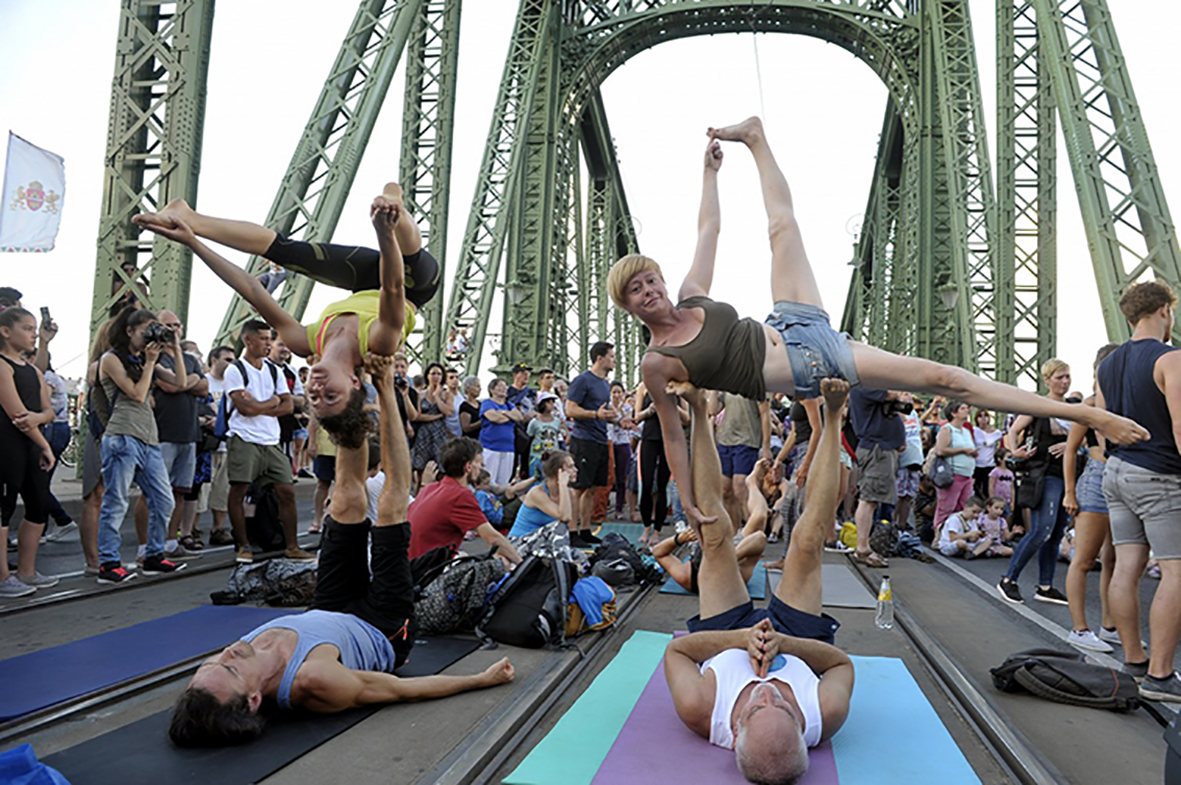 Akrobaták és acroyogások léptek fel a Cirkusz Jam elnevezésű rendezvényen.