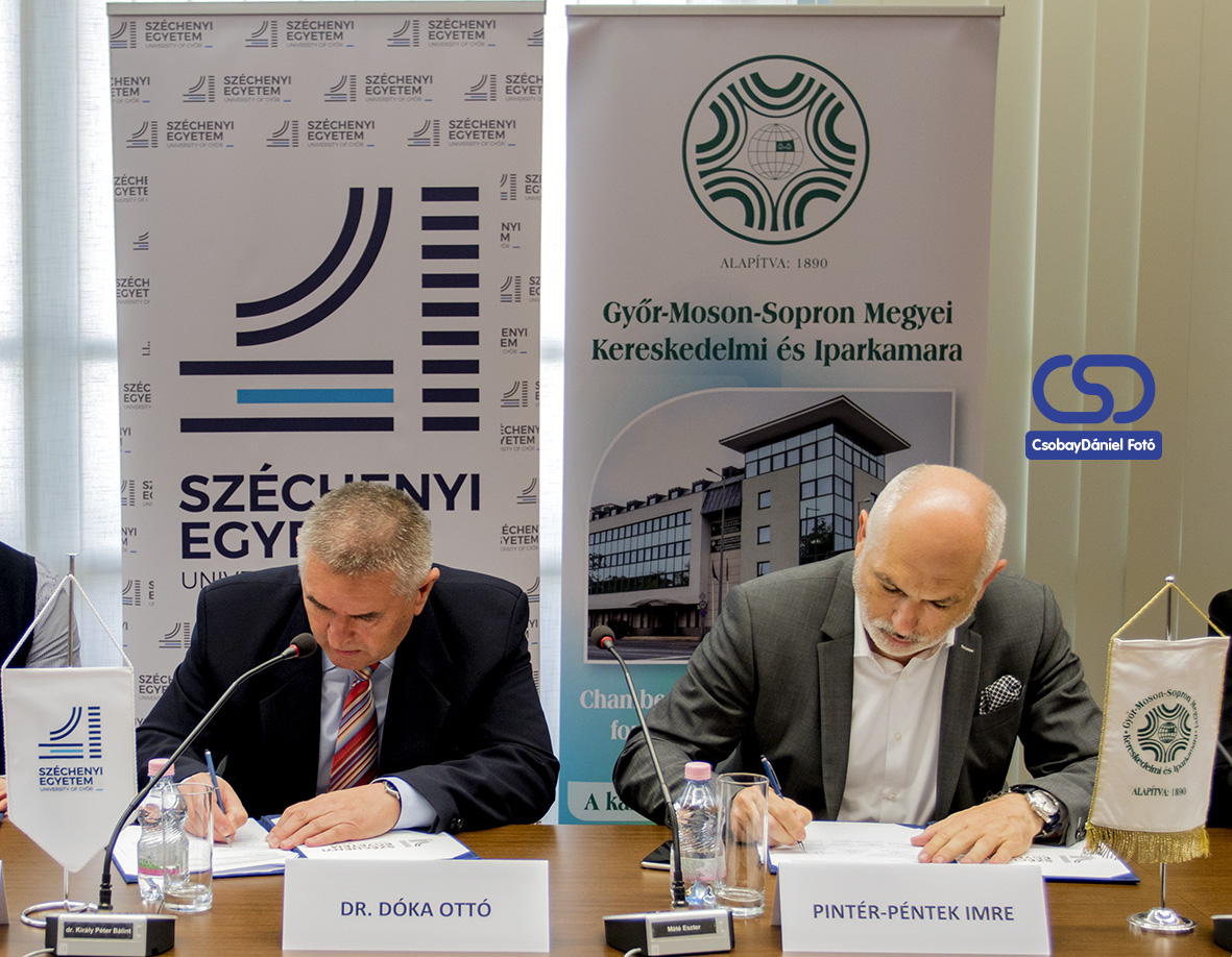 Együttműködési megállapodást írt alá ünnepélyes keretek között a Győr-Moson-Sopron Megyei Kereskedelmi és Iparkamara és a Széchenyi István Egyetem, hétfőn.