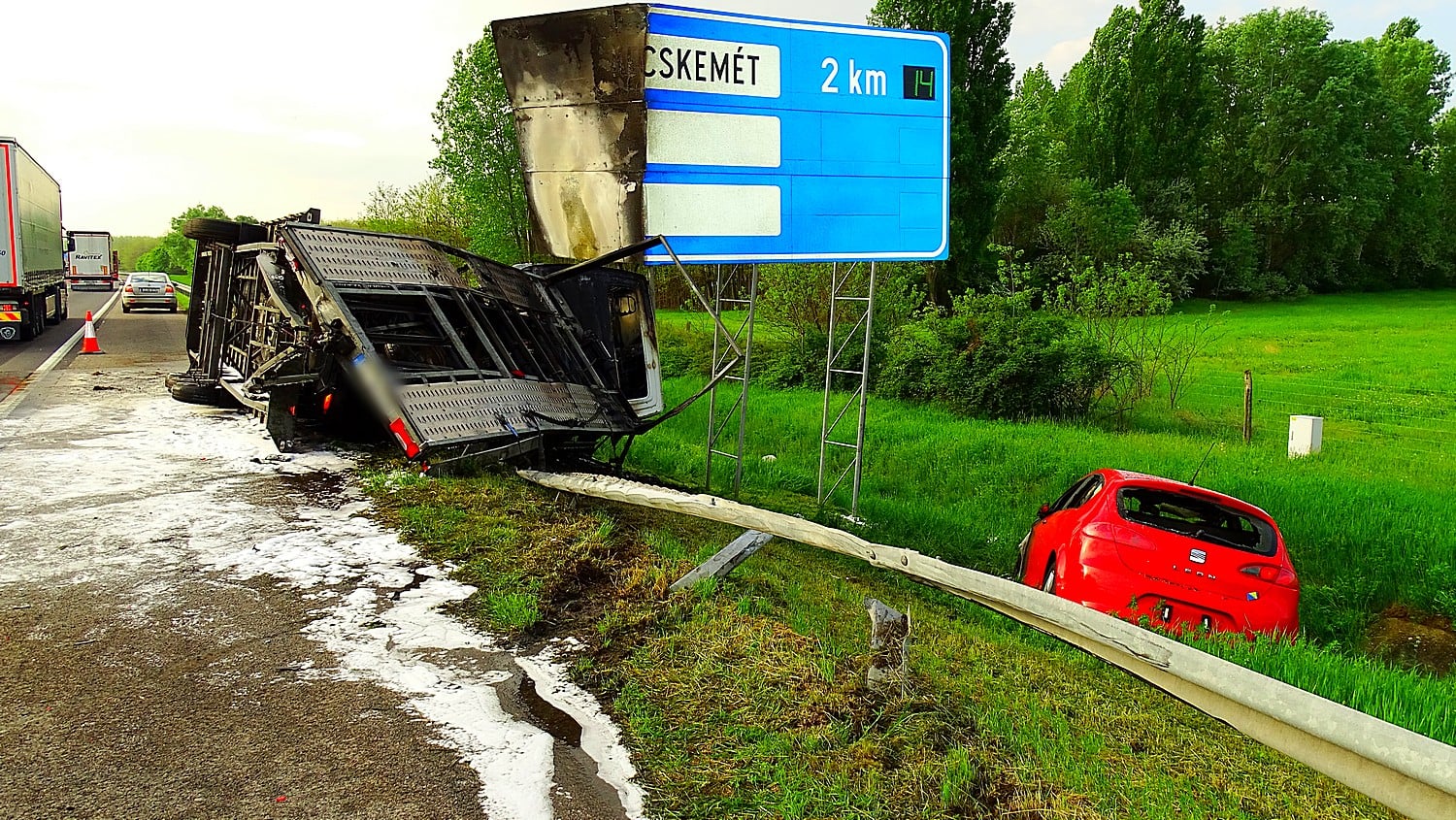 A baleset az M5-ös autópályán történt, az egyik balesetekkel foglalkozó Facebook csoportban azt közölték: felborult, majd kigyulladt egy autószállító kisteherautó az M5-ös autópálya Szeged felé vezető oldalán, Kecskemét térségében, a 88-as kilométernél. A helyszínre a kecskeméti hivatásos tűzoltók érkeztek ki, akik három habosított vízsugárral oltják a lángokat. A munkálatok idejére a sztráda érintett szakaszát teljes szélességében lezárták.
