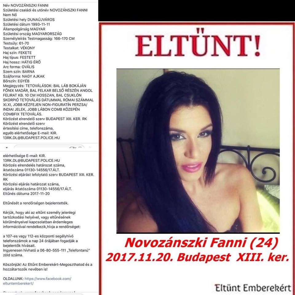 A rendőrség is kereste az eltűntként nyilvántartott Novozánszki Fannit (VV Fanni), aki a Blikk információi szerint meghalt.