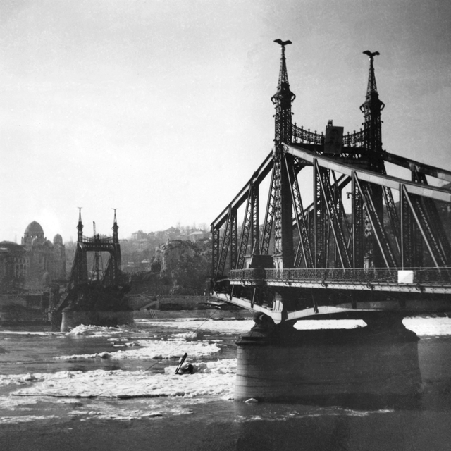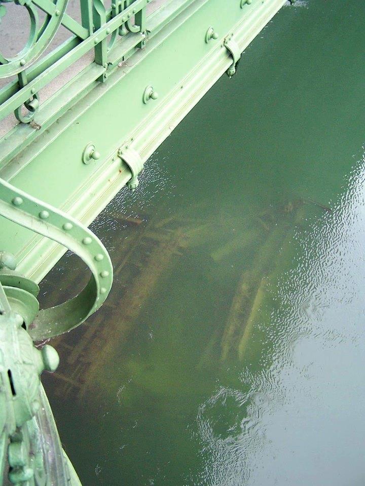 Előbukkant a Dunából a felrobbantott Ferenc József híd maradványa
