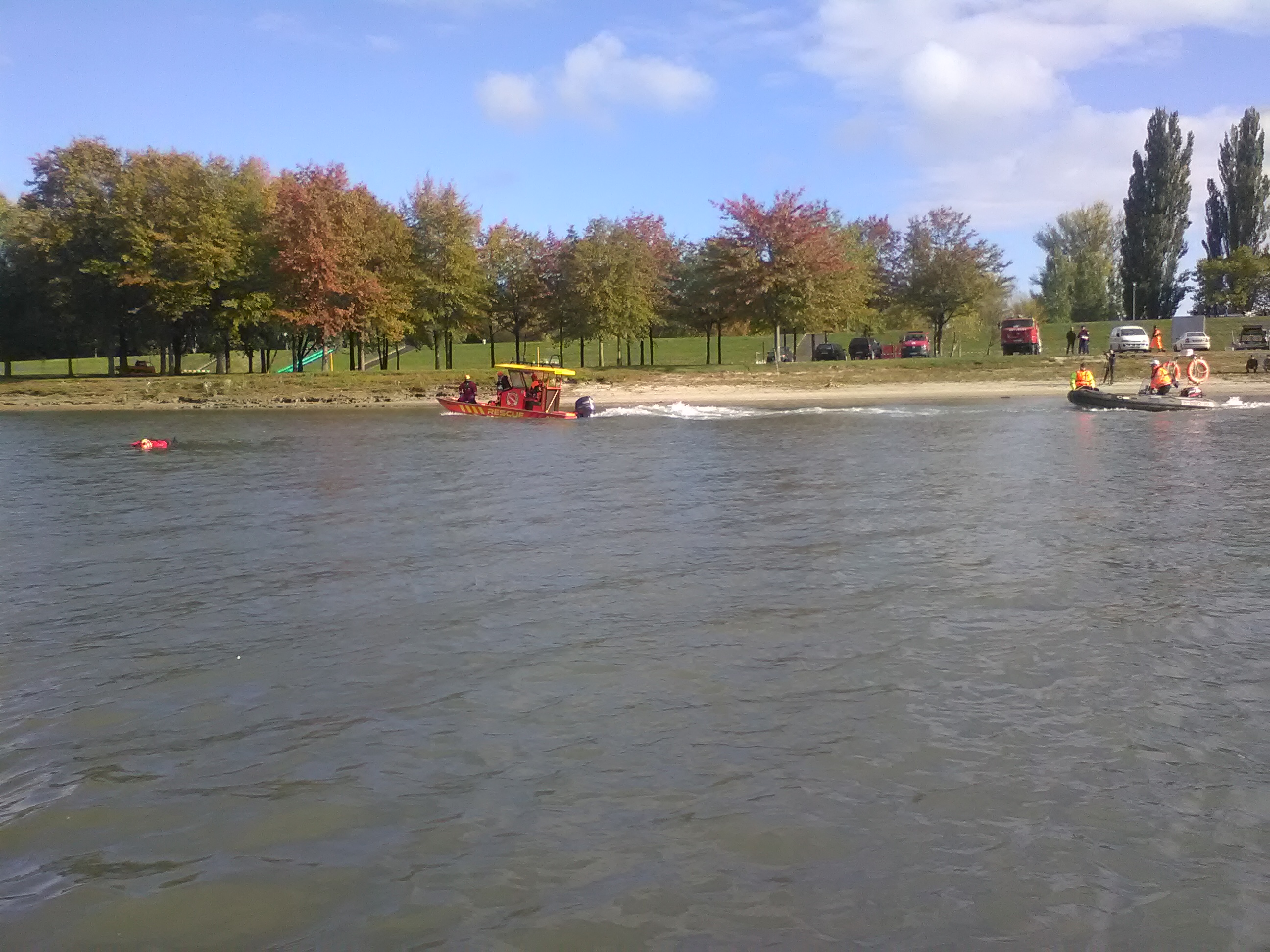 Ember vízből mentése, árvíz elleni védekezés. Minősítő kvalifikációs gyakorlat az Aranyparton
