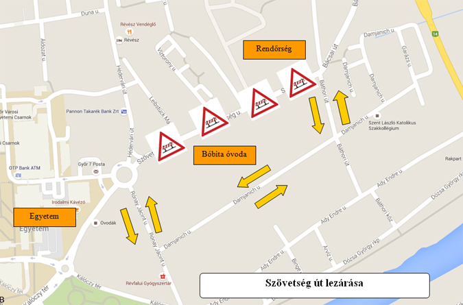 A terelés miatt a Szövetség út – Báthori utca, valamint a Báthori utca – Damjanich utca kereszteződéseiben kanyarodó főirányokat alakítanak ki. – zárta tájékoztatását a győri Útkezelő Szervezet szóvivője.