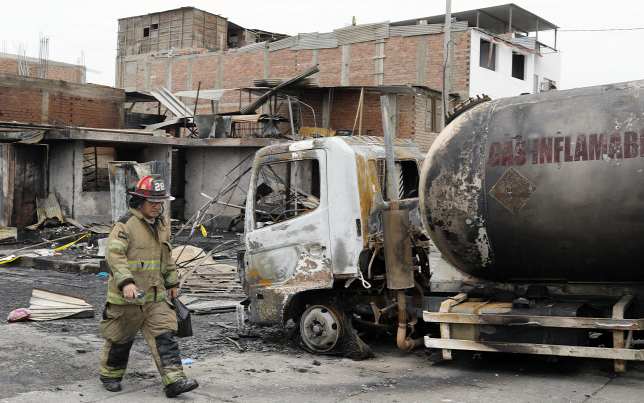 A teherautó egy rámpáról gurult le egy limai utcában, aminek következtében megsérült egy szelep, a kiszivárgó gáz pedig lángba borította a járművet és a környező házakat.