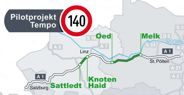 Még 2018-ban emelték kísérleti jelleggel 130-ról 140 km/h-ra a sebesség felső határát az A1-es (Bécs-Salzburg) osztrák autópálya két szakaszán, összesen 120 kilométeren.